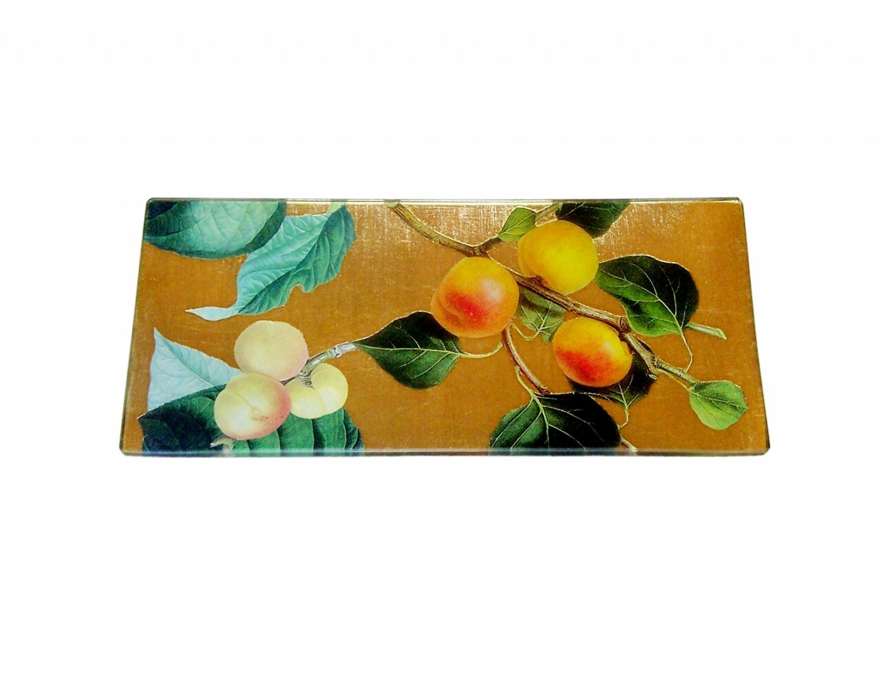 This small, elegant desk tray has been created with hand cut reproduction prints and many layers of gold gilding. The tray adds a wonderful finishing touch to a home office decor or to hold jewelry on a bureau among other many decorative functions. It has been finished on the back with a handmade paper and then carefully sealed. Hand wash. Hand signed by Scott Potter. Alternate background colorations of either silver or white may also be requested through the Scott Potter studio. See the Custom Patterns section for additional designs that my be ordered for this specific size tray.